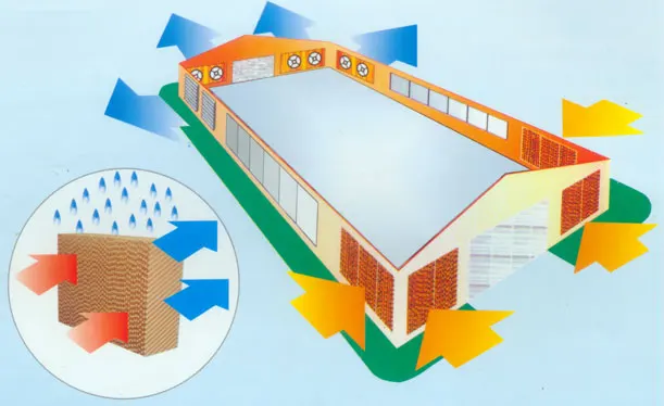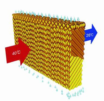 כאשר המים חוצים את כרית הקירור, המים הופכים לסרט מים על פני הכרית. סרט המים מחליף חום עם האוויר העובר ומתאדה לאוויר. כעיקרון של קירור באידוי, בקרת הטמפרטורה והלחות באמצעות שינוי נפח הלחות וגודל האוורור.